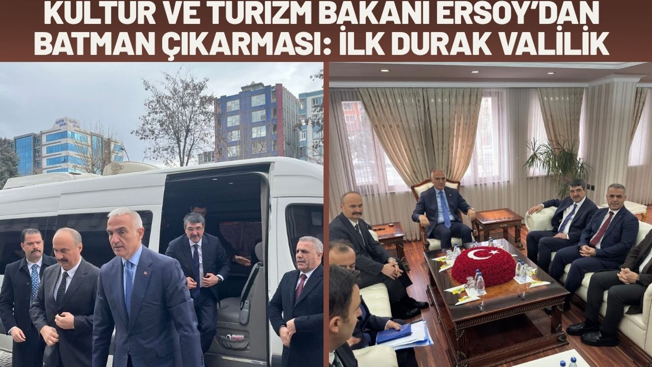 Kültür ve Turizm Bakanı Mehmet Nuri Ersoy, kentin tarihi ve kültürel potansiyelini yerinde incelemek ve yürütülen projeleri denetlemek amacıyla bugün Batman’a geldi. Bakan Ersoy’un yoğun Batman gündeminin ilk adresi Valilik binası oldu.