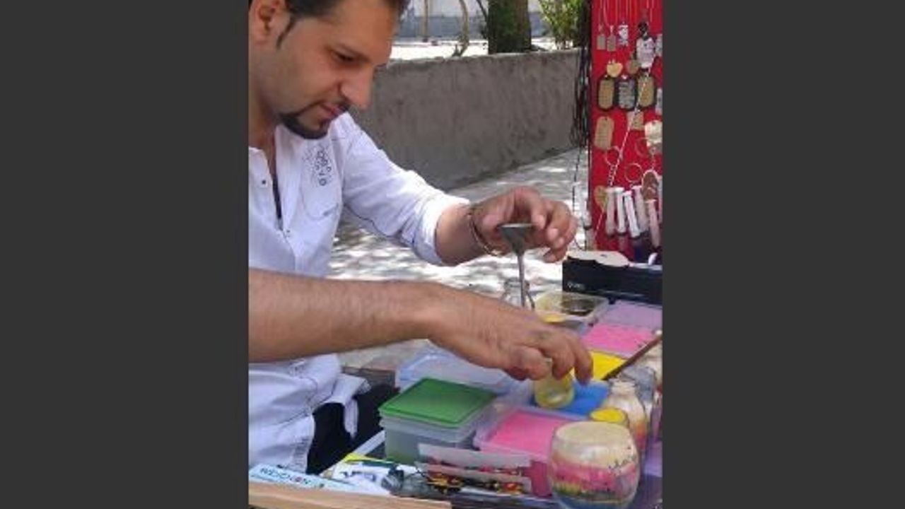Hem kum hem de el sanatlarından eserler meydana getirdiğini dile getiren Hussin, 'Türkiye ve Ortadoğu'da bardak içine kumdan şekil veren tek aile biziz. Batman'da kısa zamanda büyük ilgi gördük. Anahtarlık, pirinç tanesine, makarnaya, her türlü metal, demir, tahta, cam ve aklınıza gelecek her şeye isim yazıyoruz. Ev ve işyerlerinin duvarlarına da çizimler yapıyoruz. Bu sayede geçimimizi sağlamış oluyoruz.' dedi. İlkha