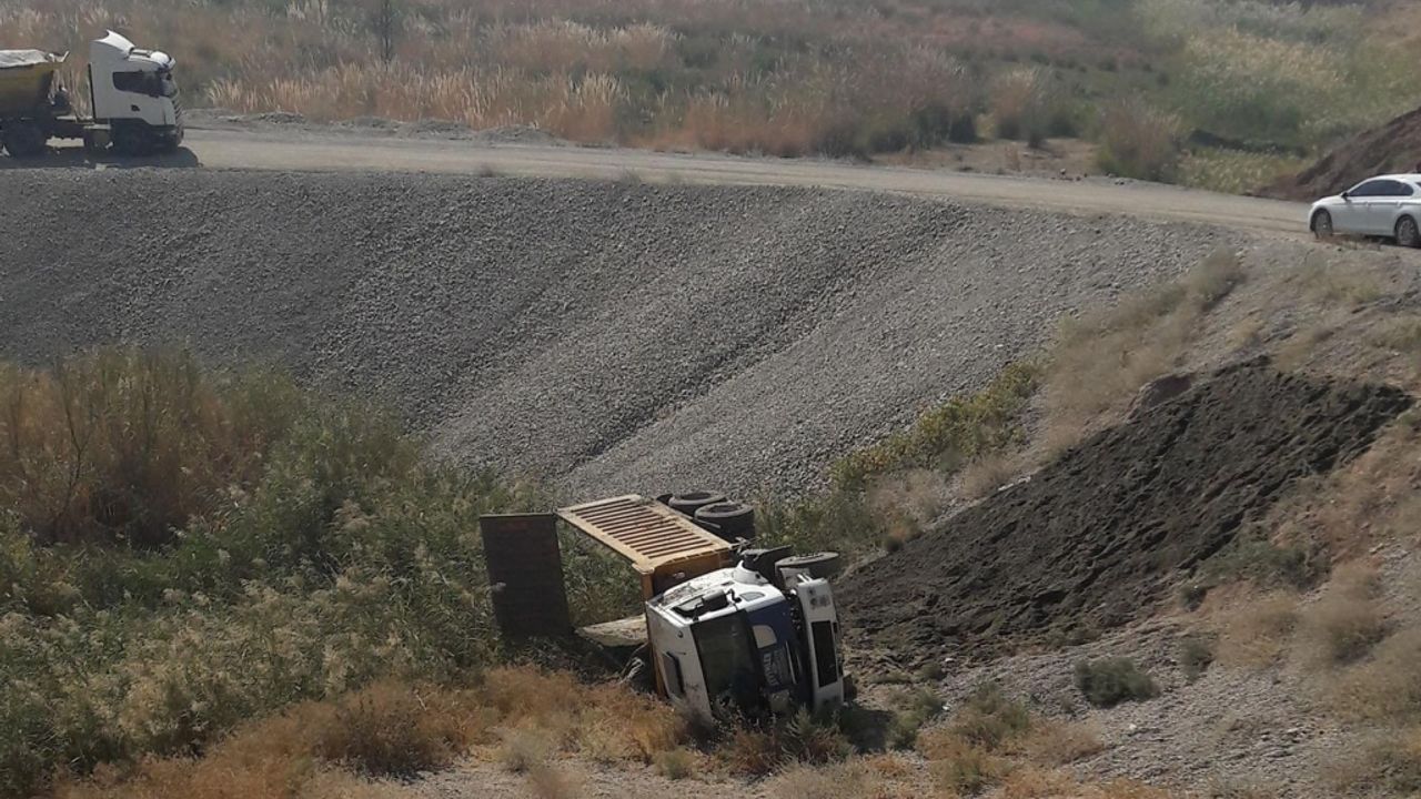 Batman ilçe merkezine yaklaşık 3 kilometre uzaklıkta bulunan kum ocağı yakınlarında sürücüsünün direksiyon hakimiyetini kaybetmesi sonucu kum yüklü kamyon şarampole yuvarlandı.