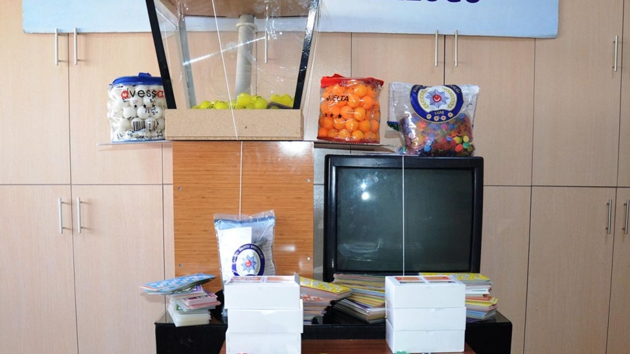 'Ahlak Büro Amirliği görevlilerimizce umuma açık işyerlerinde yapılan denetimlerde kumar oynandığı tespit edilen ve daha önce mühürlendiği tespit edilen bir iş yerine yapılan operasyon neticesinde; bir adet tombala makinası, bir adet televizyon, bir adet kamera ve kumar oynanması için hazırlanmış diğer malzemeler muhafaza altına alınmıştır.'