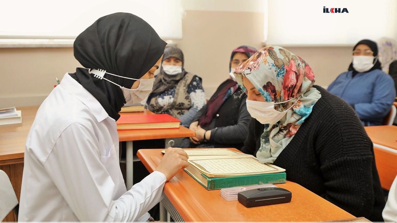 Hafta içi düzenli olarak Kur’an-ı Kerim öğrenen kadınlar,