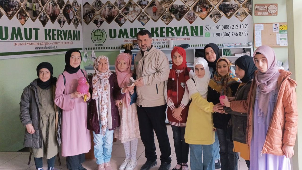 oldukları harçlıklarını depremzedelere verilmek üzere Umut Kervanına bağışladı.
