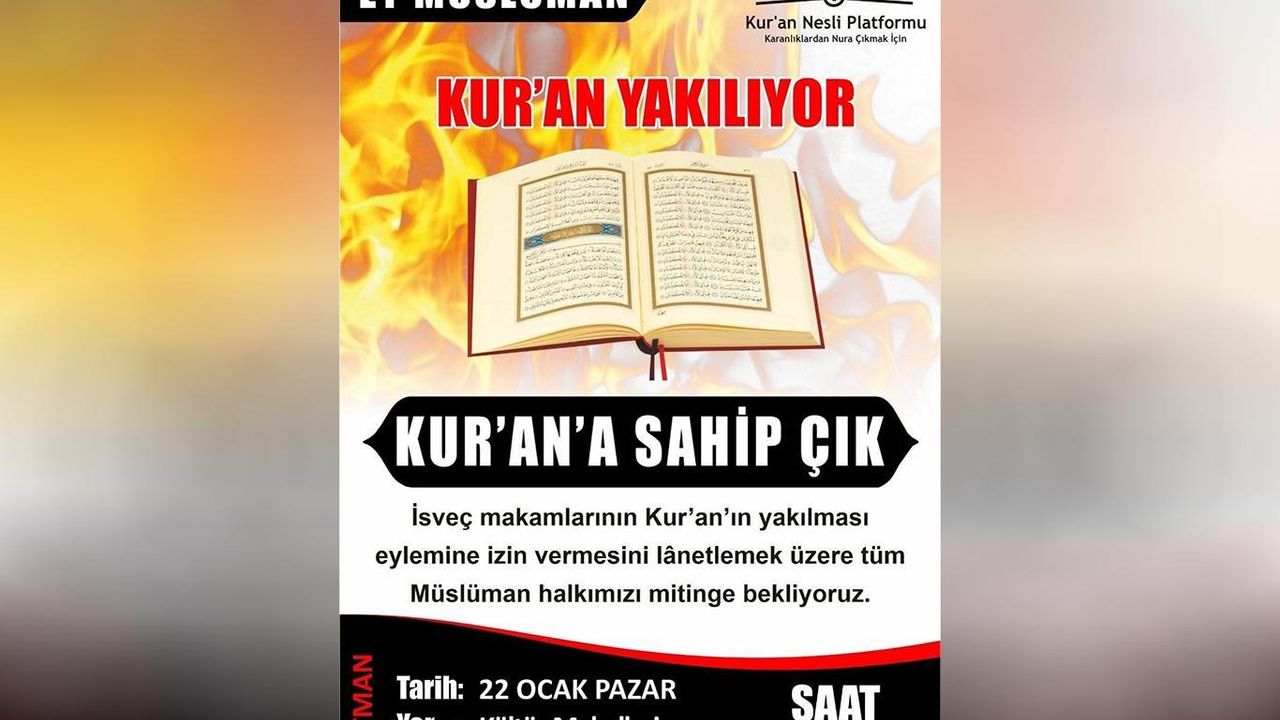 Konuyla ilgili açıklama yapan Kur'an Nesli Platformu Başkanı Beşir Şimşek, "Kur'an-a sahip çık" temasıyla 22 Ocak Pazar günü saat 13.30'da Kültür Mahallesi 8 Mart Kadın Parkı yanında düzenleyecekleri mitinge tüm halkı davet etti.
