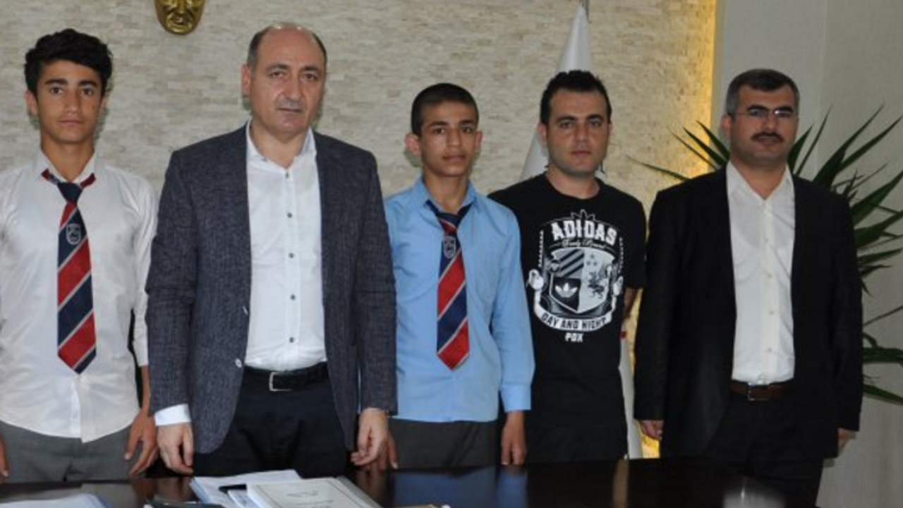 Atatürk Anadolu Lisesi Okul Müdürü Hamdin Aslan ve Beden Eğitimi Öğretmeni Gökhan Köşker refakatinde boksta Türkiye 3.'sü olan Nasır Işık ve güreş müsabakalarında Türkiye 5.'si olan Nurullah Güda'yı makamında konuk eden İl Milli Eğitim Müdürü Mahmut Kurtaran, Okul Müdürü Hamdin Aslan'dan bilgi aldı. Başarılı öğrencileri kutlayan Kurtaran, öğrencilerle bir süre sohbet etti.