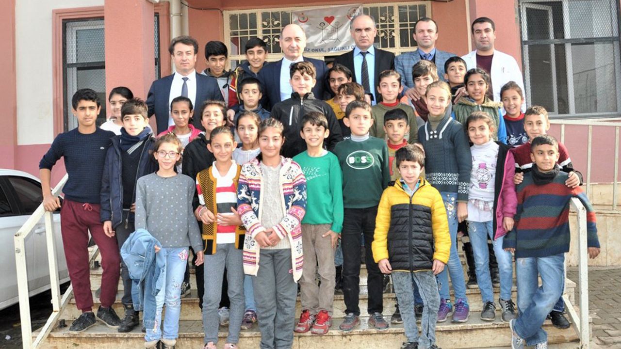 Kurtaran İlkokulu ziyaretinin ardından Binatlı Ortaokuluna geçerek Okul Müdürü