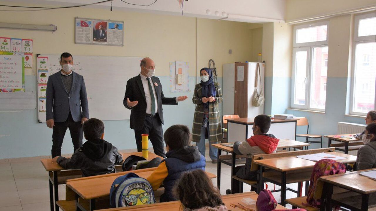 bir süre sohbet edip öğrencilerin okula kavuşma sevinçlerine ortak oldu.