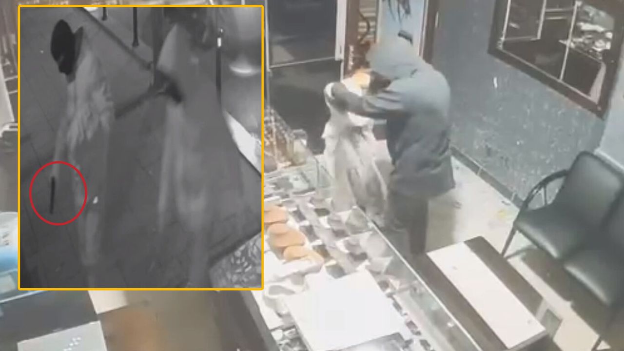 Kuyumcu soygunu anı, iş yerinin güvenlik kameralarına saniye saniye yansıdı. (İLKHA)