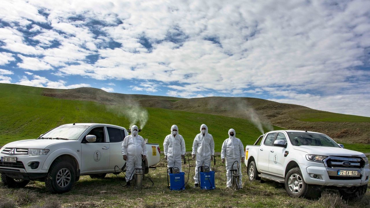 yığınları ve çöp toplama alanları ve durgun sularda ilaçlama çalışmalarına