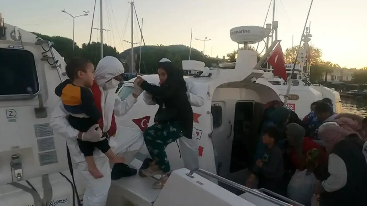 Yunanistan unsurlarınca Türkiye karasularına geri itilen lastik bottaki 45