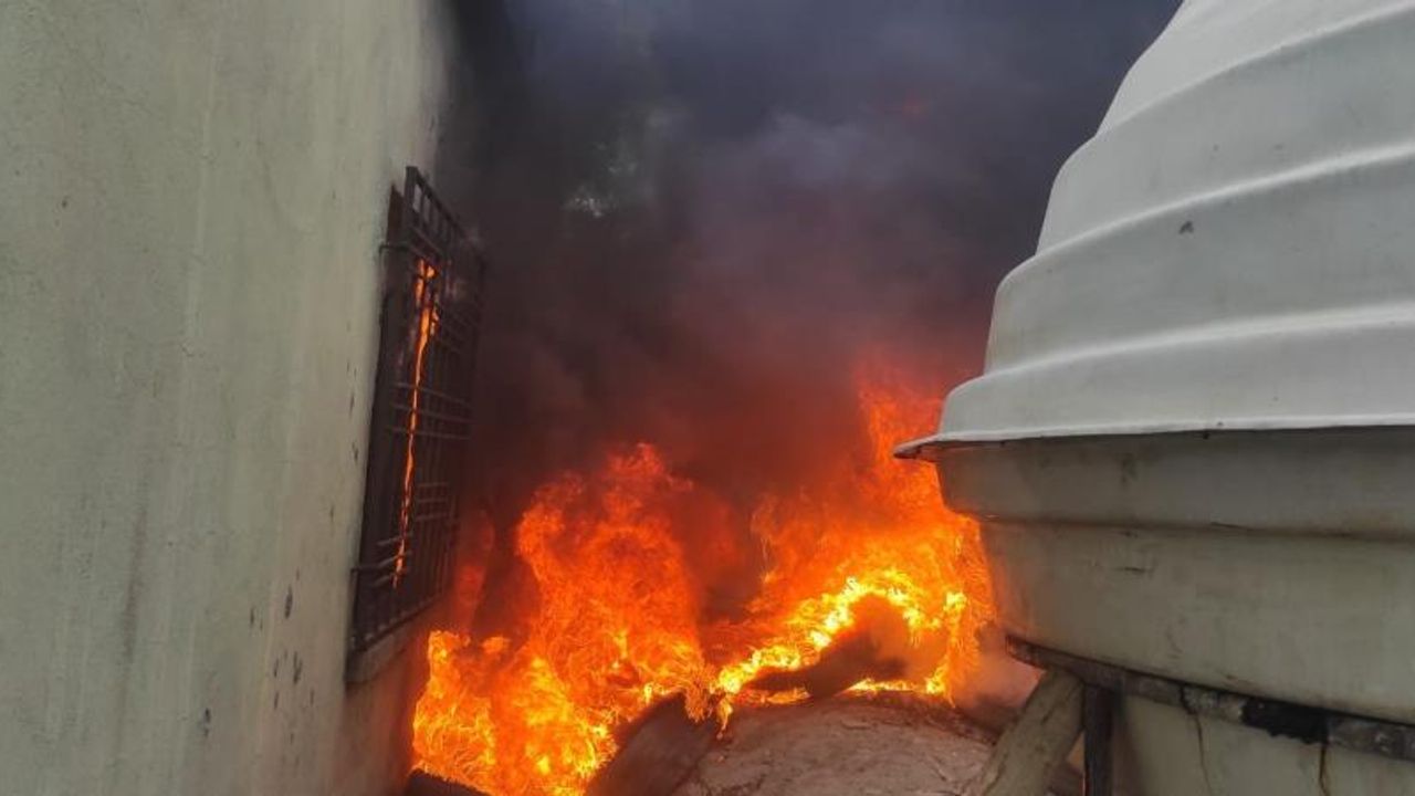 büyüyen alevler adeta mahalleyi dumana boğdu. Yangın, bitişikte bulunan caminin