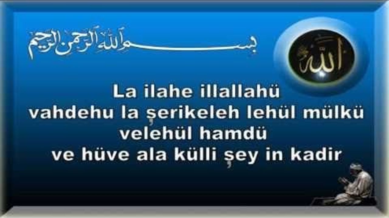 لَهُ الْمُلْكُ وَلَهُ الْحَمْدُ يُحْيِي وَيُمِيتُ (Okunuşu: "Lehül mülkü ve lehül hamdü yuhyi ve yumît")