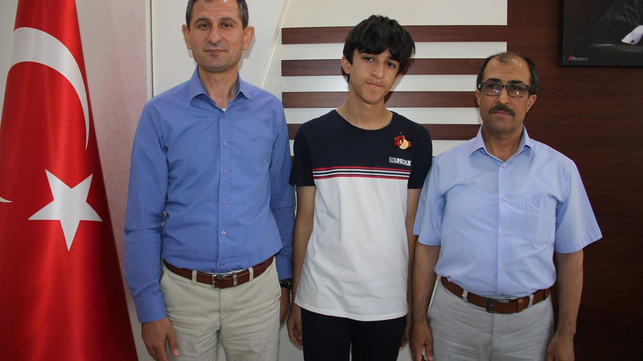 Liselere Geçiş Sınavında (LGS) soruların tamamını doğru cevaplandırarak 500 tam puan alan Türkiye birincilerinden Midyat'ın 75.Yıl İMKB Ortaokulu öğrencisi Enes Deniz, İlçe Milli Eğitim Müdürü Abdulkadir Altay tarafından tam altın ile ödüllendirildi.