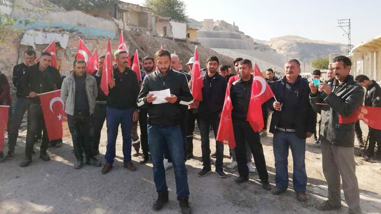 Grup adına açıklamayı okuyan Eyüp Ağılday, "Bilindiği üzere Ilısu Barajı ve HES projesi kapsamında kadim ilçemiz Hasankeyf baraj sularından etkileneceğimizden dolayı büyük bir kısmı tahliye edilmiştir. Ancak, doğup büyüdüğümüz bu şehirde farklı gerekçelerle sosyal devlet anlayışına sığmayan maddelerden dolayı konut sahibi olmamakla birlikte şu an yaşamamızı sürdürmeye çalıştığımız eski yerleşim yerinde yaşam alanımız gittikçe daralmaktadır. En son olarak ilçemizin can damarı olan köprümüz ile bağımız koparılmaya çalışılmaktadır. Bu durum dayanılamayacak bir vaziyete geldiği ve kaybedecek bir günümüzün dahi olmadığı için burada toplandık." dedi.