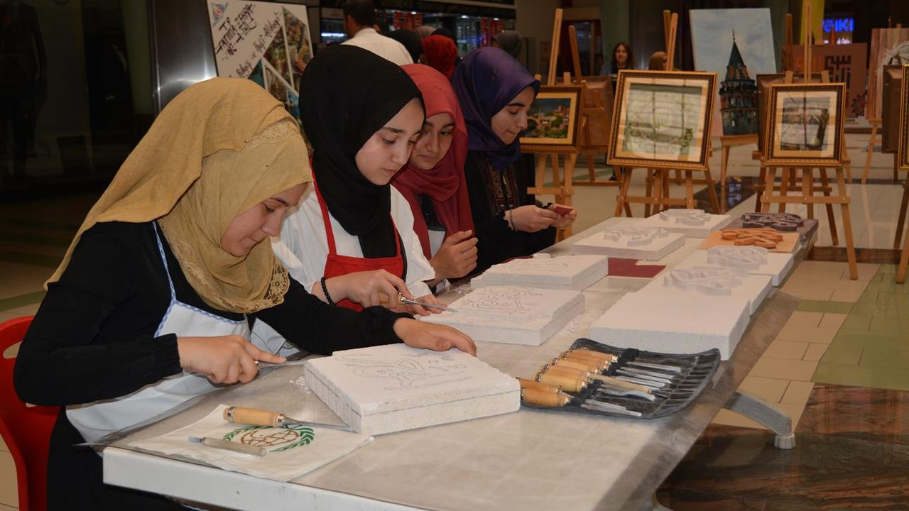 TP Fatma Zehra Kız Anadolu İmam Hatip Lisesi ve Fen ve Sosyal Bilimler Proje Okulu öğrencileri tarafından Osmanlı’nın geleneksel kâğıt kesme sanatı olan kati sanatı, Artuklular’ın taş yontma sanatı olan taş rölyef ve yağlı boya tablolardan oluşan karma resim sergisi açıldı.