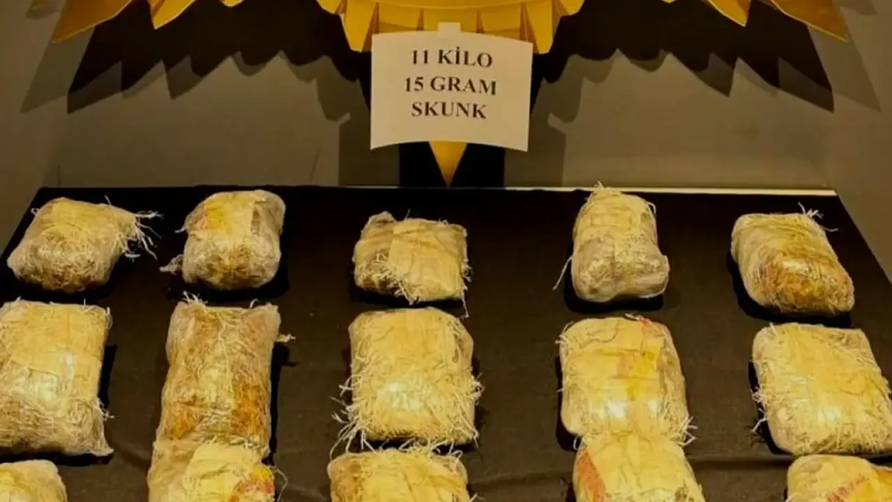 İl Emniyet Müdürlüğü Narkotik Suçlarla Mücadele Şube Müdürlüğü ekiplerince Kale uygulama noktasında şüphe üzerine hafif bir ticari araçta yapılan aramada 11 kilo 15 gram skunk ele geçirildi.