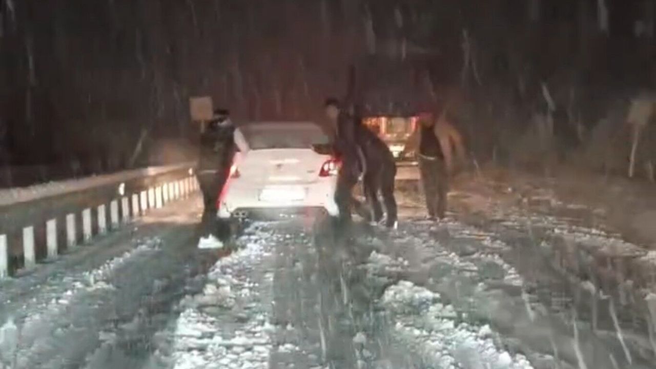 Sürücüler zor anlar yaşarken, yolda kısa süreli aksaklıklar meydana geldi. Yetkililer ise sürücülere kış lastiği kullanmaları ve trafikte dikkatli olmaları konusunda uyarılarda bulundu. (İLKHA)
