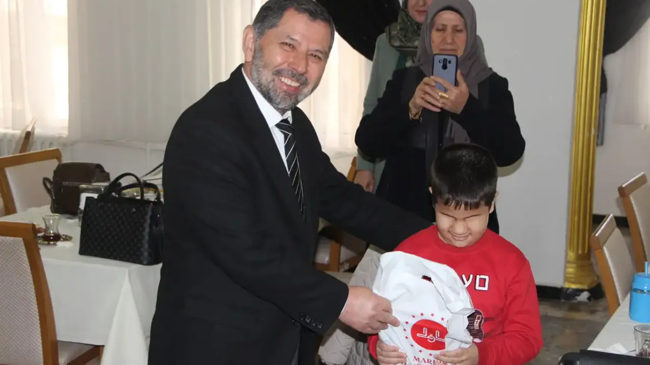 Yapılan kahvaltı etikliğinin ardından Mardin İl Müftüsü Enver Türkmen, engelli bireylere hediye takdiminde bulundu.