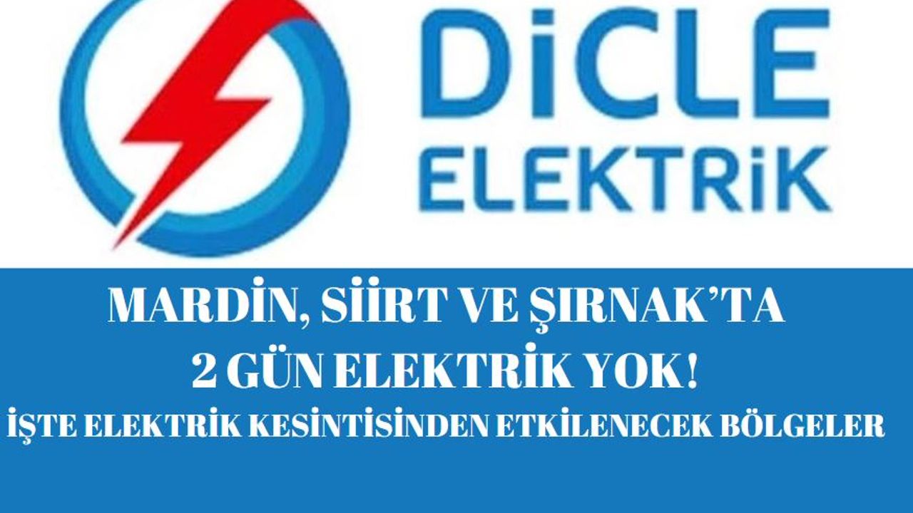 Siirt ve Şırnak illerinde 2 gün boyunca planlı elektrik kesintileri yaşanacak.