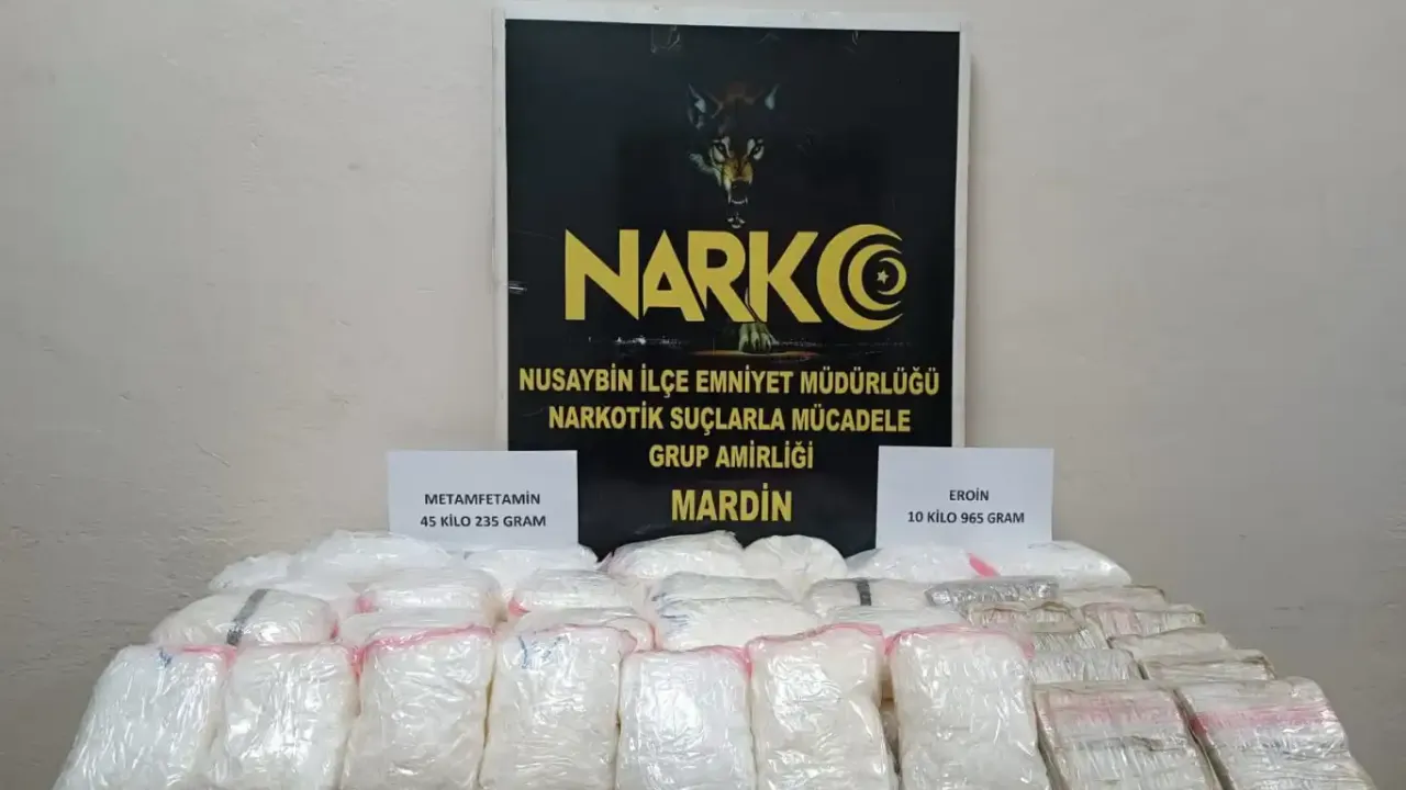 Mardin İl Emniyet Müdürlüğünce Nusaybin ilçesinde gerçekleştirilen uyuşturucu operasyonda 56 kilogram uyuşturucu madde ele geçirildi. Uzun süren fiziki takip sonucu, durdurlan şüpheli araçta yapılan aramada 45 kilogram 235 gram metamfetamin ile 10 kilogram 965 gram eroin elem geçirildi.