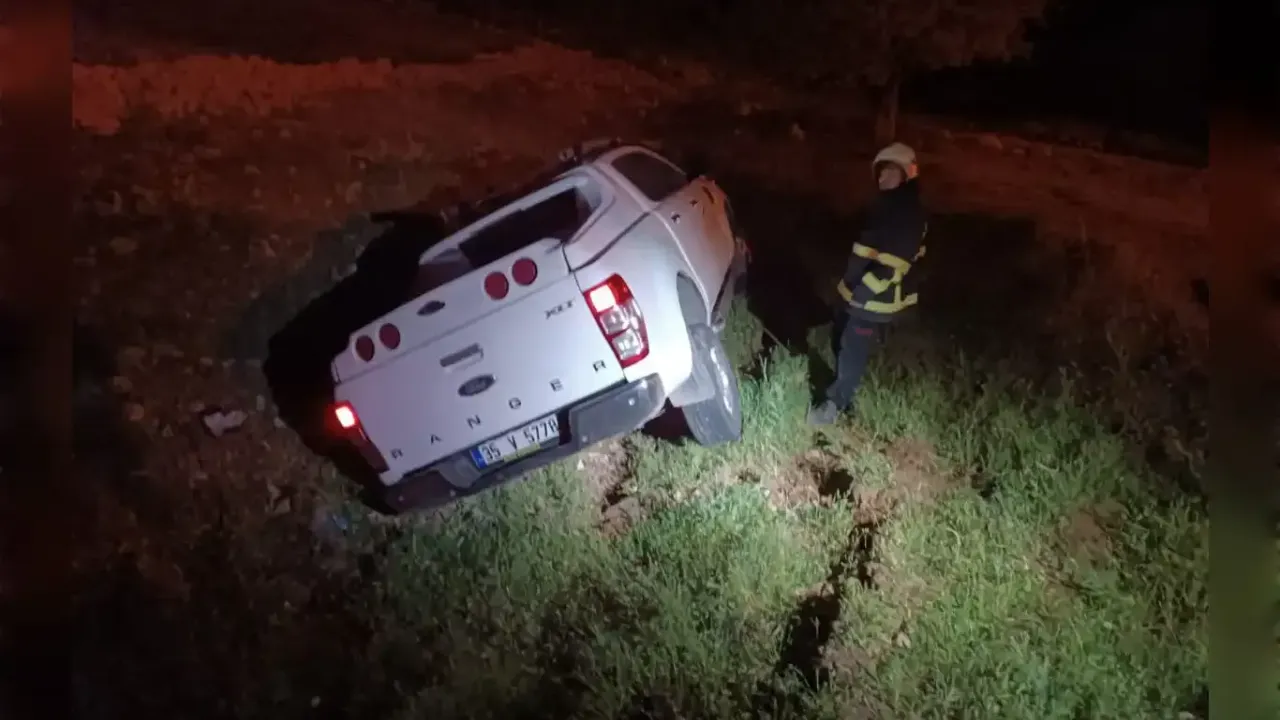 Edinilen bilgilere göre 35 V 5778 plakalı pikap, sürücüsünün direksiyon hakimiyetini kaybetmesi sonucu devrildi.