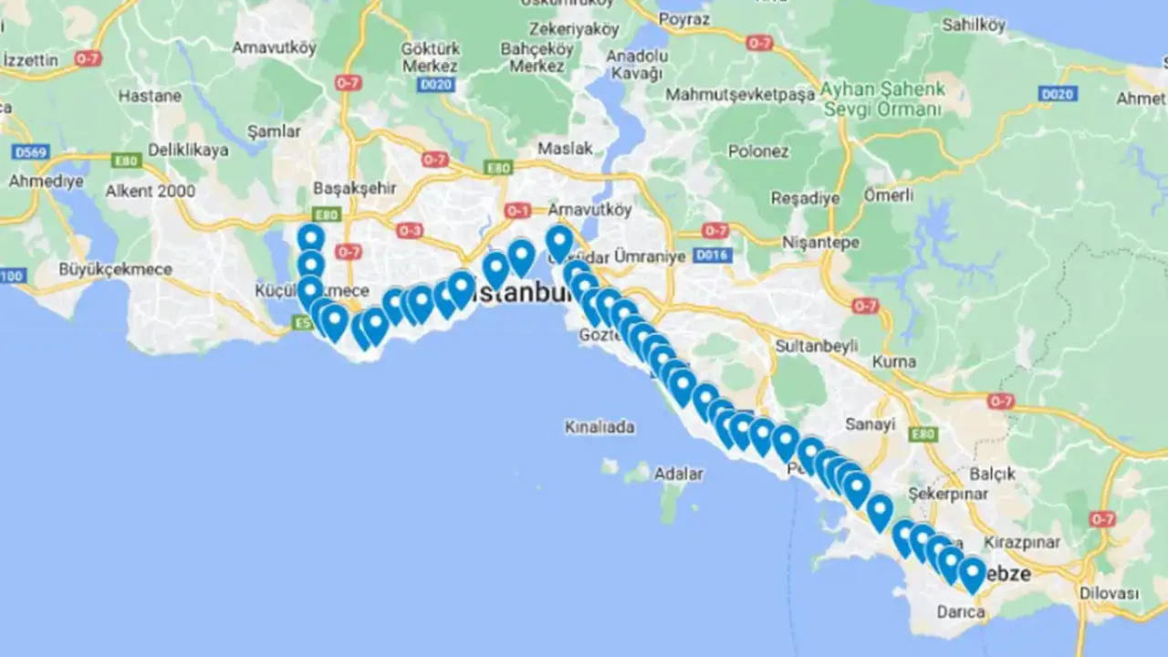 İstanbul Halkalı’dan Kalkan Marmaray; Küçükçekmece, Bakırköy, Zeytinburnu, Fatih, Üsküdar, Kadıköy, Maltepe, Kartal, Pendik, Tuzla, Kocaeli’nde Darıca ve Gebze duraklarından geçiyor.. Bu hat 43 duraktan oluşuyor. (İLKHA)