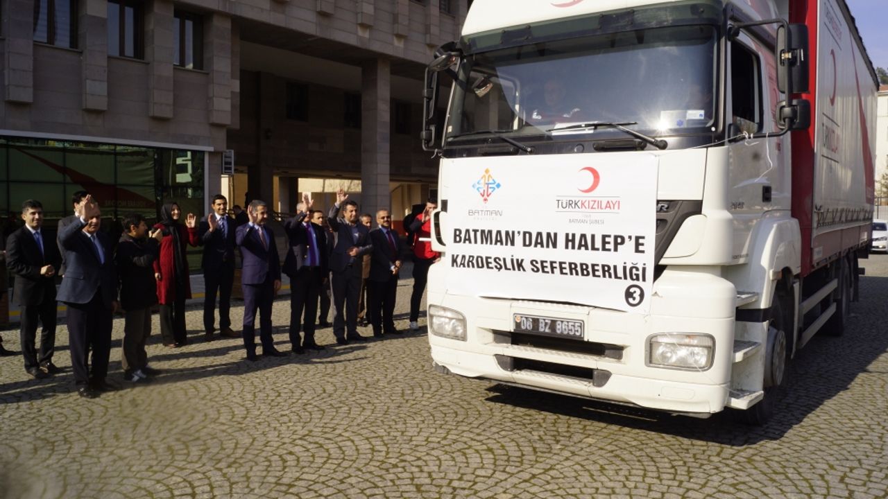 Valilik bahçesinde Halep'e doğru yol alan insani yardım malzemeleri gönderilmeden önce Batman Valisi Ahmet Deniz tarafından açıklama yapıldı. Yardım tırının gönderilmesi sırasında Kızılay Genel Merkez Yönetim Kurulu Üyesi Sabahattin Tezdiğ, Kızılay Batman Şube Başkanı Ali Tezdiğ ve Kızılay görevlileri hazır bulundu.
