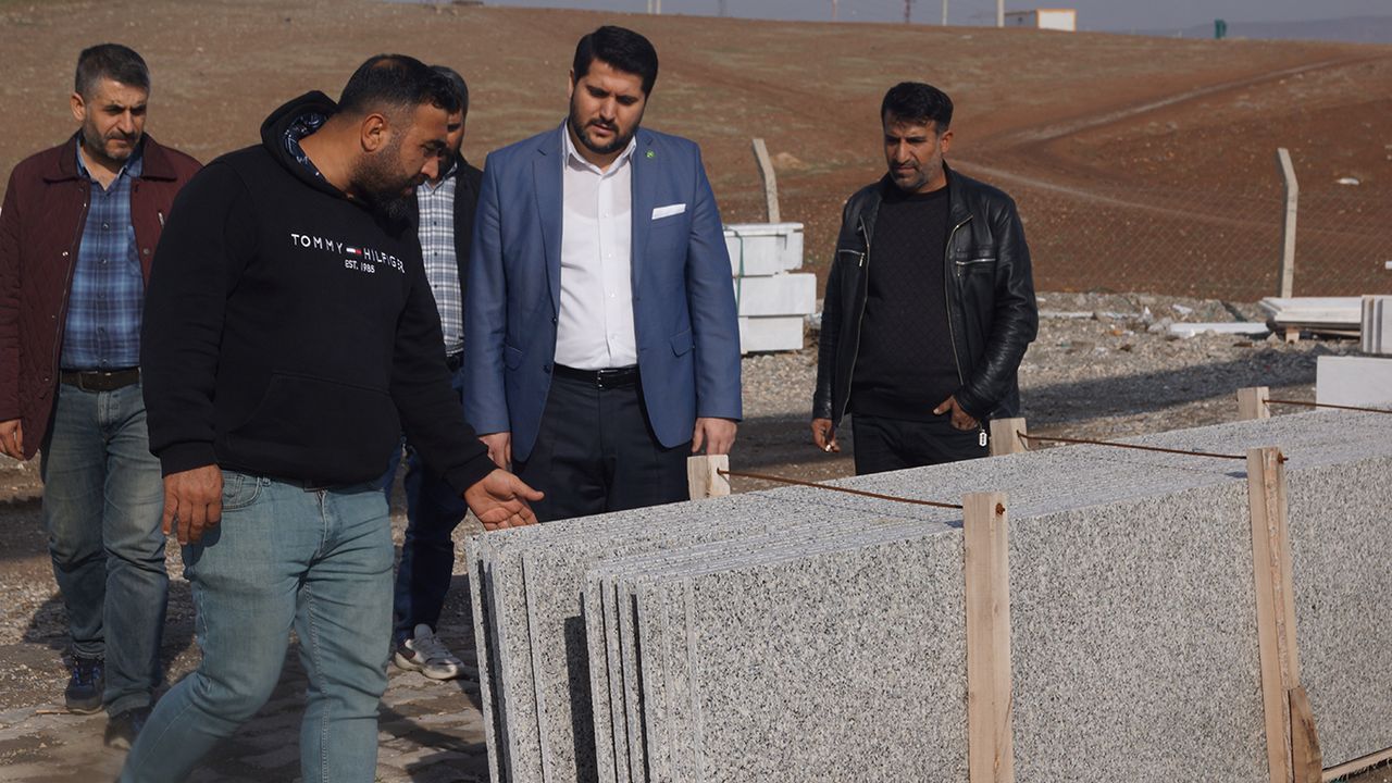 Batman Mermerciler Derneği Başkanı Rıdvan Nebioğlu ve sektör çalışanlarını