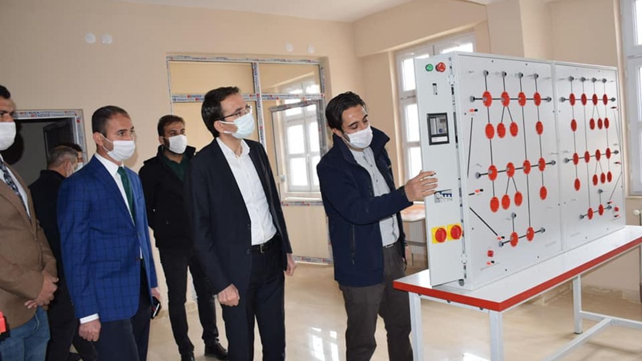 İlçe Milli Eğitim Müdürümüz Mehmet Nezir SEVİM’in de eşlik ettiği ziyarette, okul bünyesinde bulunan atölyeler gezilerek okul idarecilerinden bilgi alındı. Daha sonra öğretmenlerle buluşan Kaymakamımız Sn. Eyyüp Güngör, burada meslek liselerinin önemine değinerek yaptıkları çalışmalardan dolayı okul idarecilerine ve öğretmenlere teşekkür etti. M. EMİN URAZ