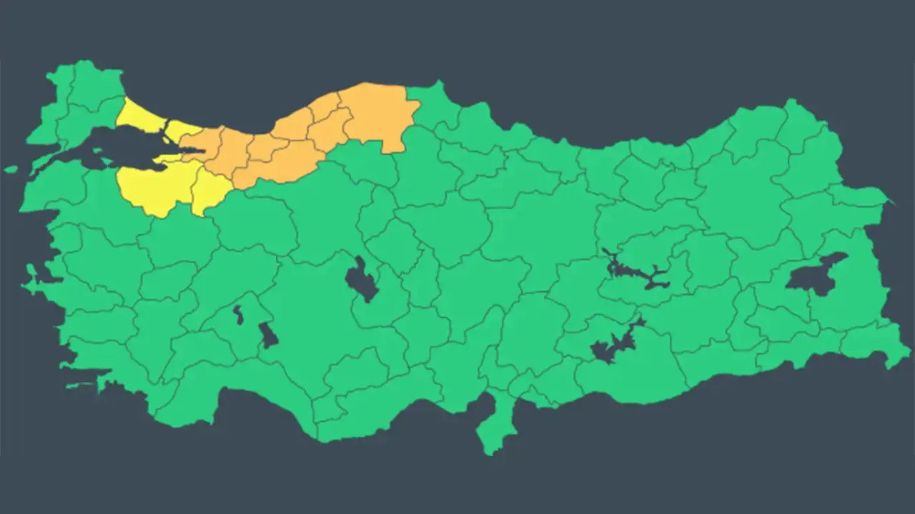 Meteoroloji, kuvvetli yağış beklenen, Bolu, Kastamonu, Kocaeli, Sakarya, Zonguldak, Bartın, Karabük ve Düzce'de "turuncu", Bilecik, Bursa, İstanbul ve Yalova için de "sarı" kodlu uyarıda bulundu.
