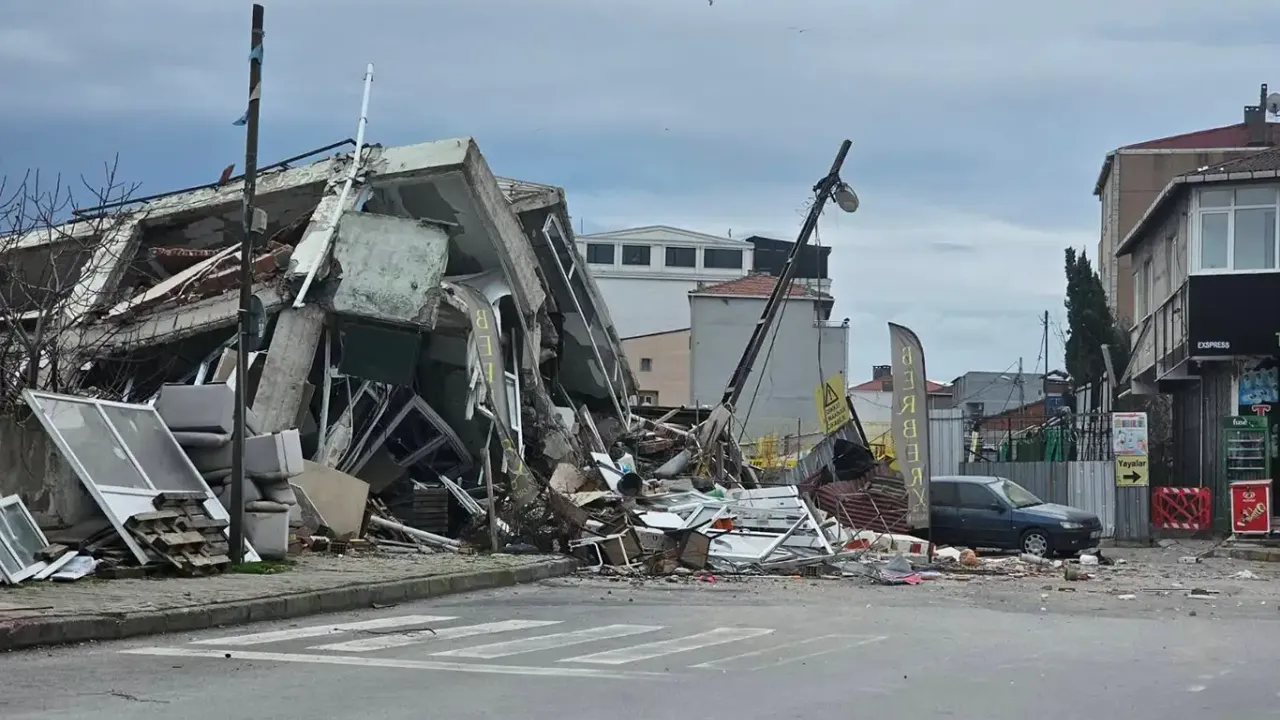 İlçeye bağlı Elmalıkent Mahallesi'ndeki biri 2 katlı, biri 3 katlı binanın önündeki yolda metro inşaatı çalışması nedeniyle çökme oluştu.