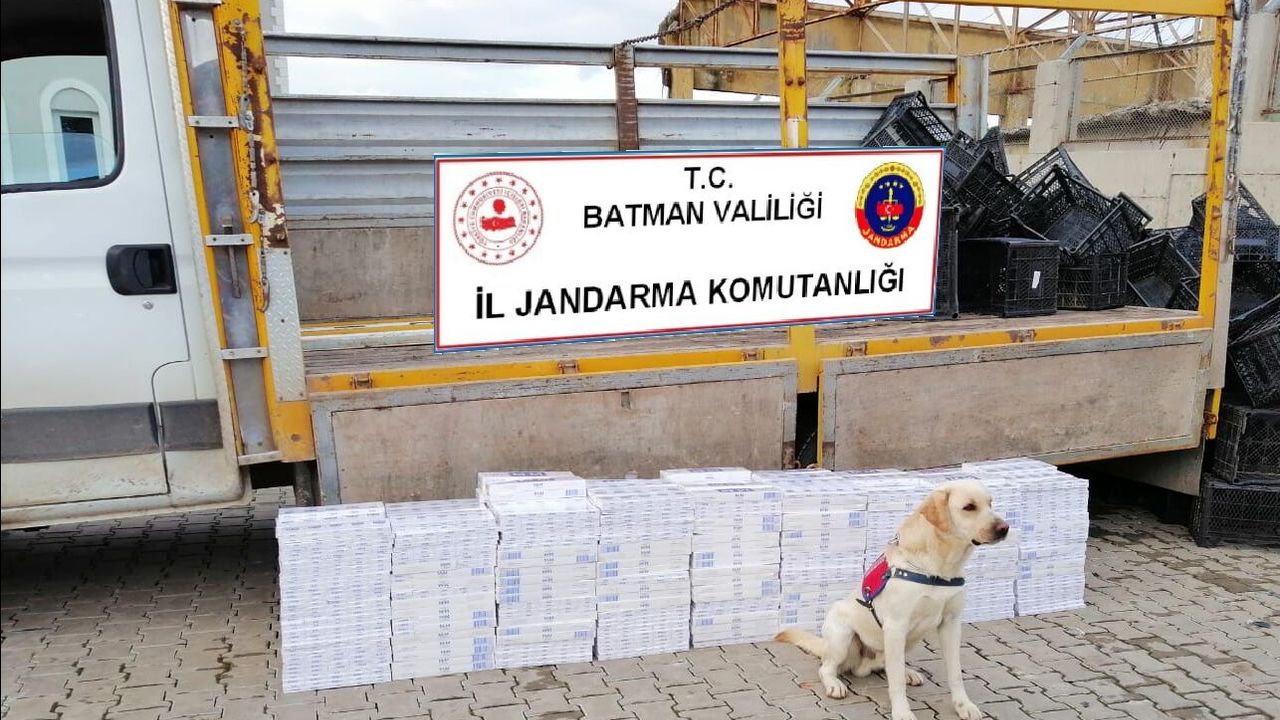 plastik meyve kasalarının altına gizlenmiş vaziyette 6 bin 560 paket bandrolsüz
