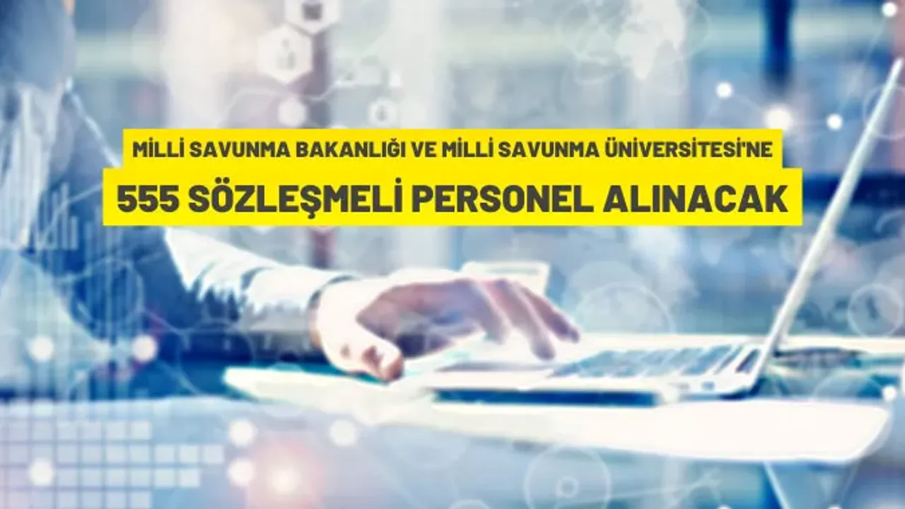 Millî Savunma Bakanlığı, Bakanlık ve Milli Savunma Üniversitesi bünyesinde istihdam edilmek üzere, 657 sayılı Devlet Memurları Kanunu ve Sözleşmeli Personel Çalıştırılmasına İlişkin Esaslar uyarınca 555 Sözleşmeli Personel alacak.Başvuru yapabilmek için 657 sayılı Devlet Memurları Kanunu'nun 48. maddesindeki genel şartları taşımak, Ölçme, Seçme ve Yerleştirme Merkezi Başkanlığı (ÖSYM) tarafından 2022 yılında yapılan Kamu Personeli Seçme Sınavına katılmış ve puan almış olmak, Başvuru tarihi itibariyle üst öğrenim durumuna göre nitelik tablosunda bulunan her bir kadro unvanı için belirlenen niteliklere sahip olmak ve süresi içinde başvurmuş ve başvuru belgesi ile birlikte istenen belge ve bilgileri vermiş bulunmak gerekmektedir.
