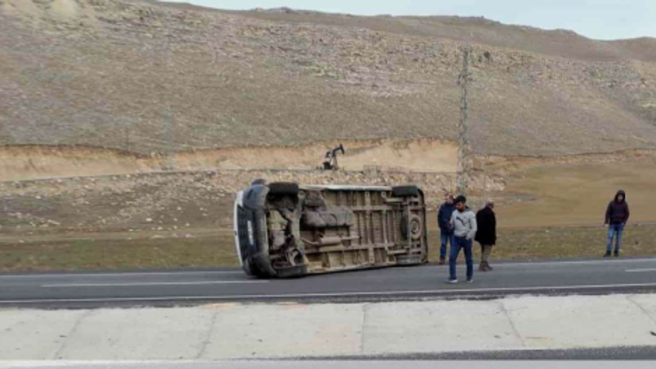 minibüs, şoförün direksiyon hâkimiyetini kaybetmesi sonucu yan yattı.
