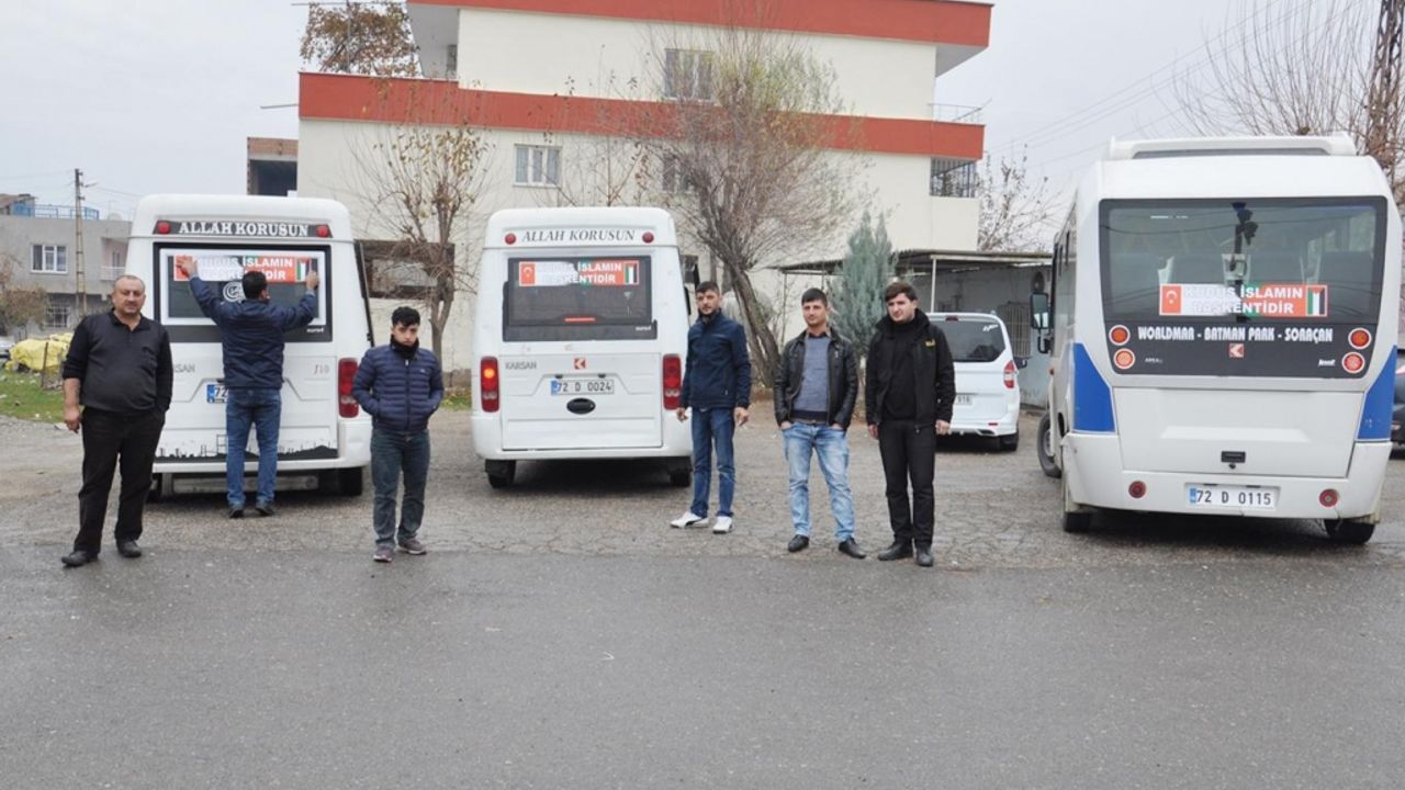 Emperyalist ABD Başkanı Donald Trump'ın Kudüs'ü işgalci siyonistlerin 'başkenti' olarak tanıma ve ABD Büyükelçiliğini Kudüs'e taşımaya yönelik şer planına bir tepki de Batmanlı minibüsçülerden geldi.