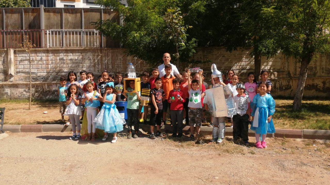birçok doğada kaybolması uzun süren atık malzeme yer aldı. Çocuklarını sahnede