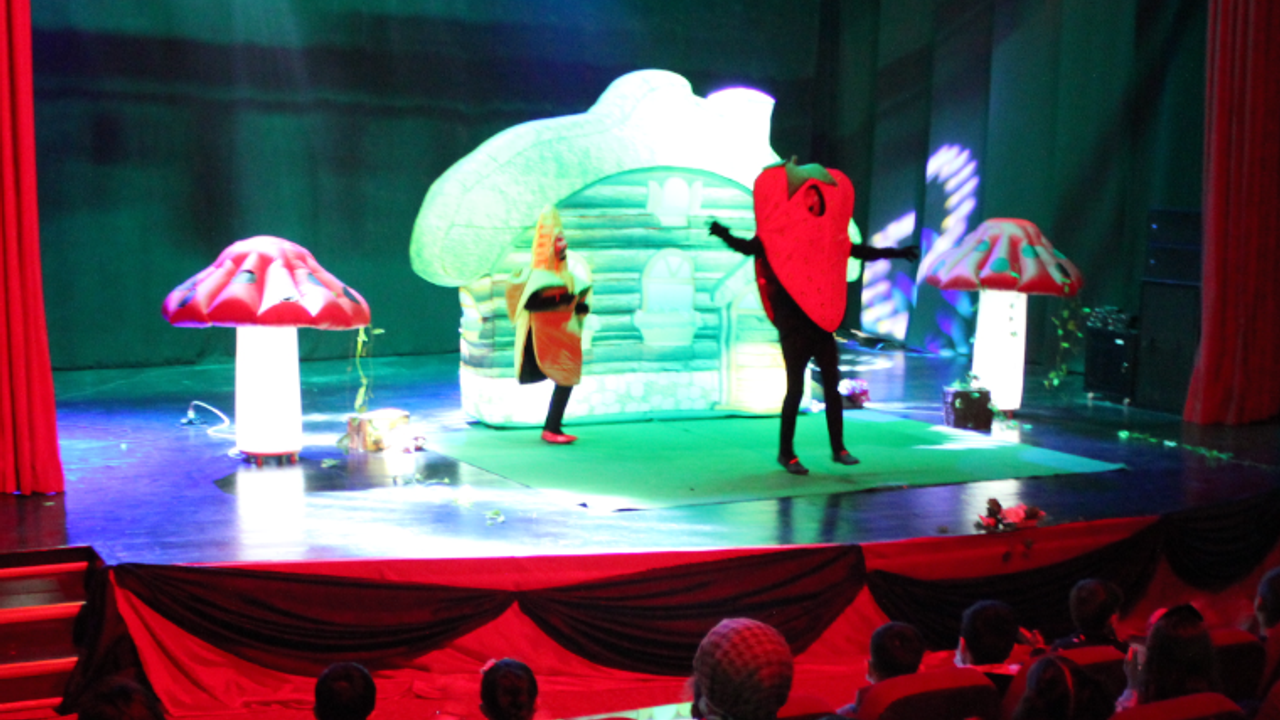 sonunu tiyatro etkinliğiyle geçiren minik öğrenciler Vitamingiller adlı tiyatro