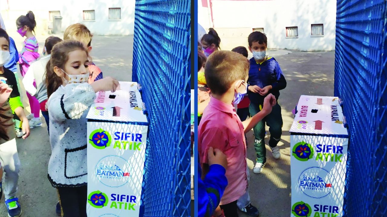 Mehmet Emin Şimşek İlkokulu proje ekibi, Batman Belediyesi ve Çevre Şehircilik İl Müdürlüğü iş birliğinde cam, metal, plastik, kağıt, karton gibi geri dönüştürülebilir atıkların evsel atıklardan ayrı toplanması ve değerlendirilmesi amacıyla okul bahçesine basketbol potası görünümlü kumbaralar yerleştirildi.