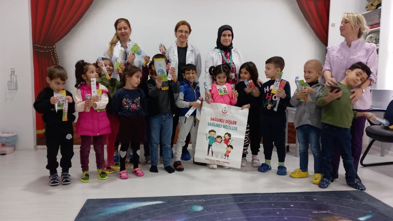 Mahallesi Mimar Sinan Anaokulu’nda bulunan öğrencilere; doğru diş fırçalama