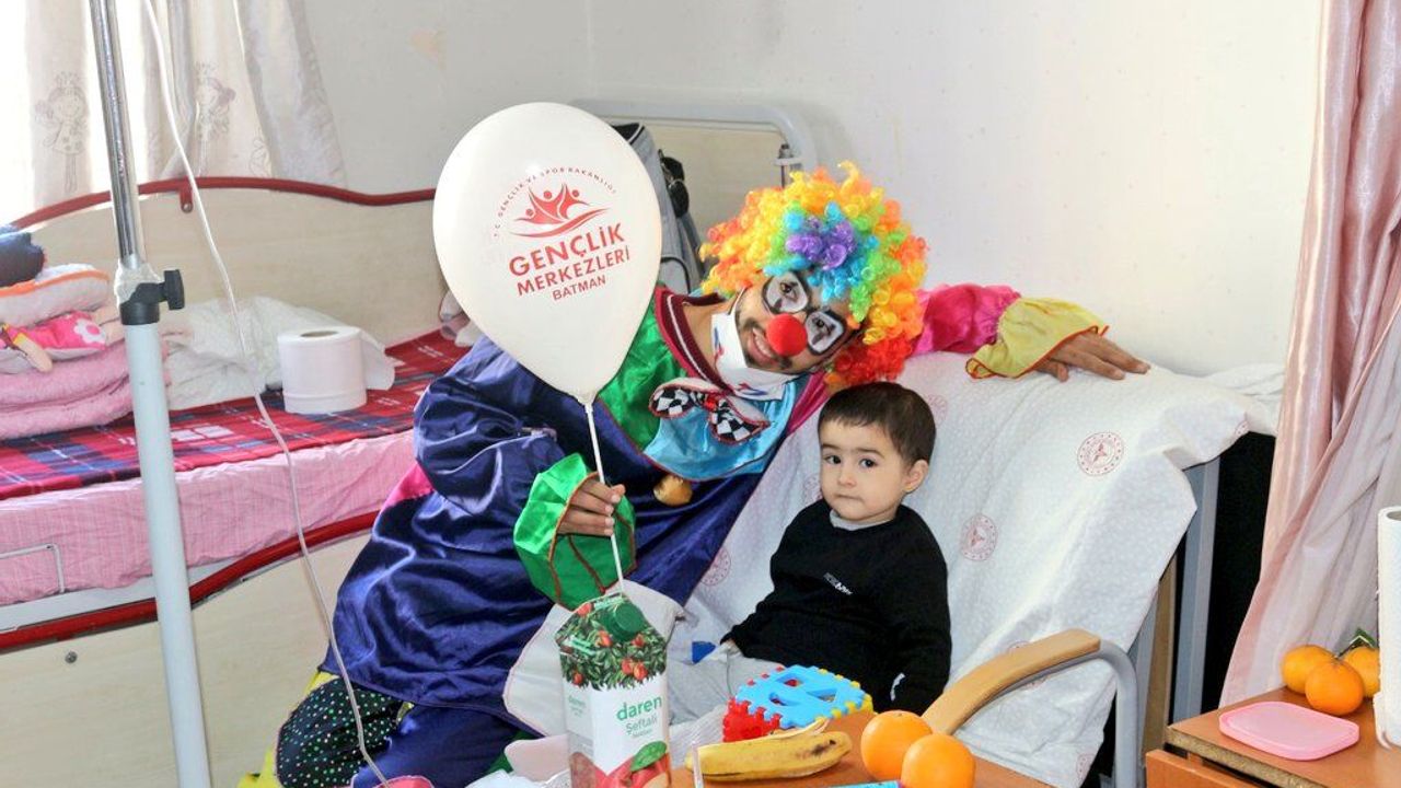 servisinde yatan çocuklara palyaçolarla sürprizler yapıldı. Palyaçolar