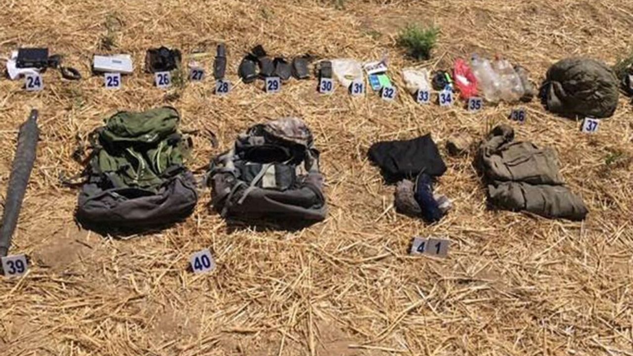 Açıklamanın devamında, 'Yapılan inceleme neticesinde sırt çantaları içerisinde; bir adet gece görüş dürbünü, bir adet telsiz, 2 ayrı paket halinde 58 adet fişek M16, 4 adet fişek, bir adet kasatura, 2 adet kaleşnikof şarjörü 4 adet deri şarjör kılıfı, bir adet FM radio, bir adet palaska ve bakım ipi, 12 adet büyük boy pil (4'ü bağlı), 2 adet kalem pil, poşet içerisinde 100 gram, beyaz madde (uyuşturucu olabileceği değerlendirilmiş), bir adet kumanda, bir adet 40 cm uzunluğunda kablo, bir adet siyah renk elektronik devre ve çok sayıda yaşamsal malzeme ele geçirilmiştir.'ifadeleri kullanıldı.