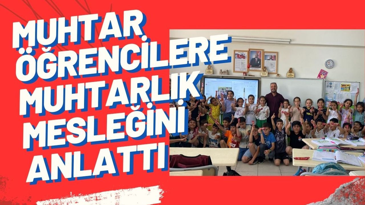 Hayat Bilgisi Dersinde yer alan 'yakın çevremizde bulunan yerel yönetim birimleri ve yöneticilerini tanıyalım’ adlı konuyu uygulamalı öğrenmek ve mesleki tanıtım günleri kapsamında muhtarlık mesleği minik öğrencilere anlatmak için okula davet edilen muhtar Şemsettin Örnek, Atatürk İlkokulu Öğrencilerine muhtarlık mesleği hakkında bilgi verdi.