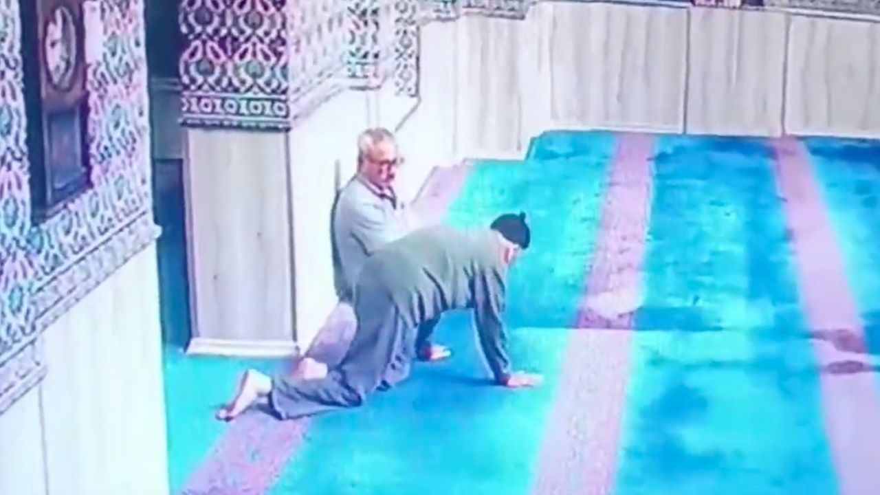 Namaza gelen amcanın görüntüleri güvenlik kamerası tarafından an be an kayda alındı. Sosyal medya üzerinden yayılan video namaz kılmamak için bahane arayanlara ise namaz için hiçbir engelin olmadığını gösterdi.