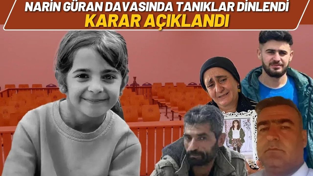 Narin Güran, 21 Ağustos 2024'te kaybolmuş, 8 Eylül 2024'te Eğertutmaz Deresi’nde cansız bedeni bulunmuştu. Soruşturma kapsamında 12 kişi ve 3 çocuk hakkında "suçluyu kayırma" suçlamasıyla dava açılmıştı.
