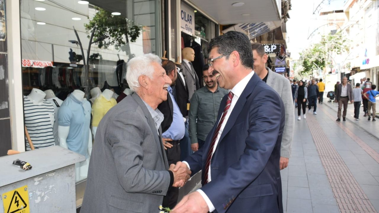 esnaf ve vatandaşlarla selamlaşan Nasıroğlu, yolda sohbet ettiği vatandaşları