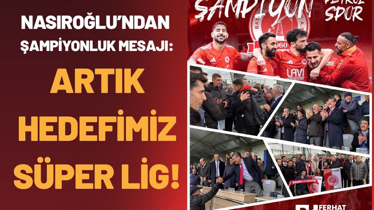 1.Lig’e yükselişin bir son değil, yeni bir devrin başlangıcı olduğunu ifade eden Ferhat Nasıroğlu, Batman halkına Süper Lig hedefini işaret etti. "Aynı inanç, aynı azim ve aynı kararlılıkla yolumuza devam edeceğiz. Artık hedefimiz: Süper Lig!" diyen Nasıroğlu, şehrin tek yürek olduğunda aşamayacağı hiçbir engel olmadığını vurguladı.