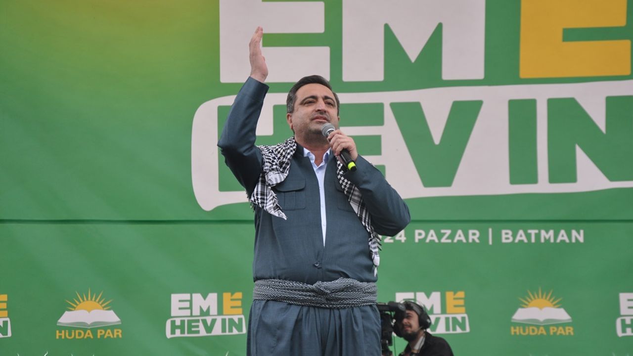 HÜDA PAR Batman Belediye başkan adayı Serkan Ramanlı, kürsüye