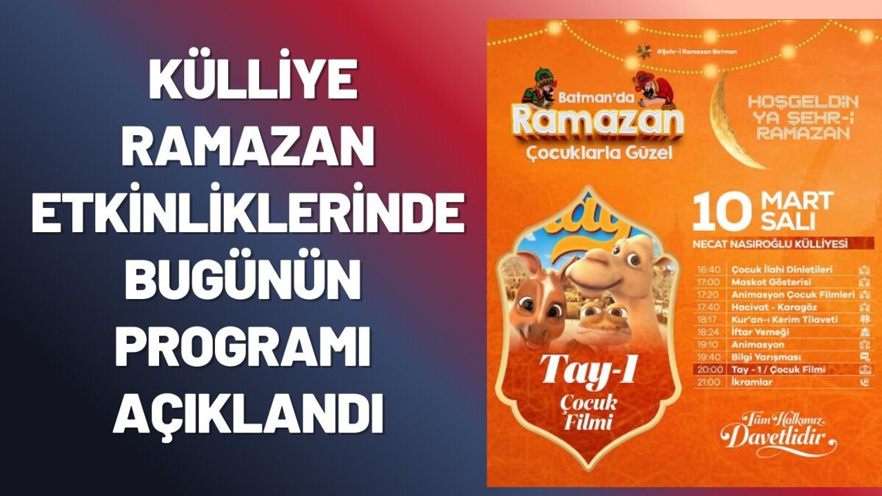 Batman Valiliği ve Batman Belediyesi tarafından Ramazan ayı kapsamında düzenlenen etkinlikler her akşam farklı programlarla vatandaşları bir araya getiriyor. Etkinliklerin merkezi ise Necat Nasıroğlu Külliyesi oluyor.