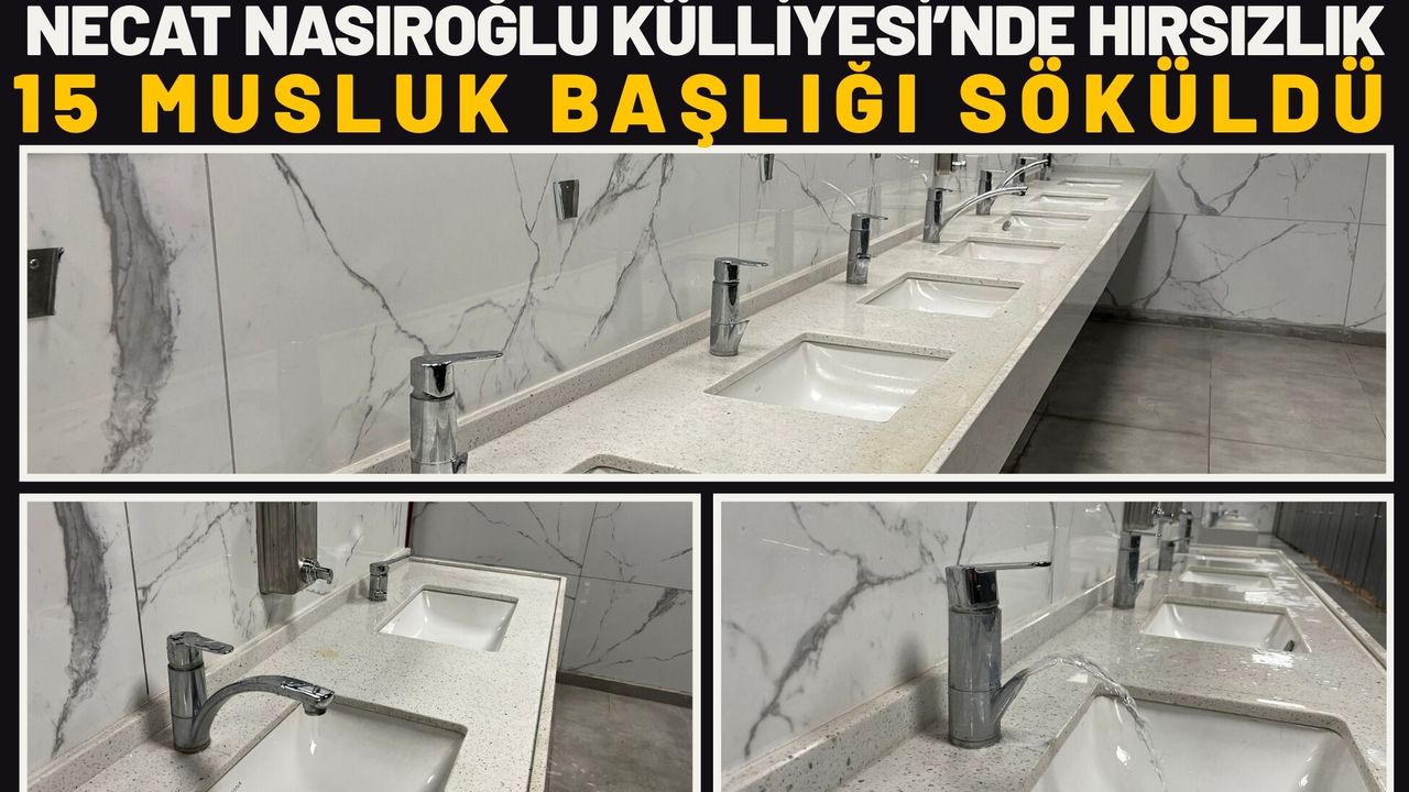 Edinilen bilgilere göre, Necat Nasıroğlu Külliyesi içerisinde yer alan abdest alma alanına giren şahıslar, 15 adet musluk başlığını yerinden sökerek kayıplara karıştı. Muslukların kırılarak yerinden çıkarılması sonucu tesisatta maddi hasar meydana gelirken, çalınan parçaların hurda olarak değerlendirilmek amacıyla alındığı tahmin ediliyor.