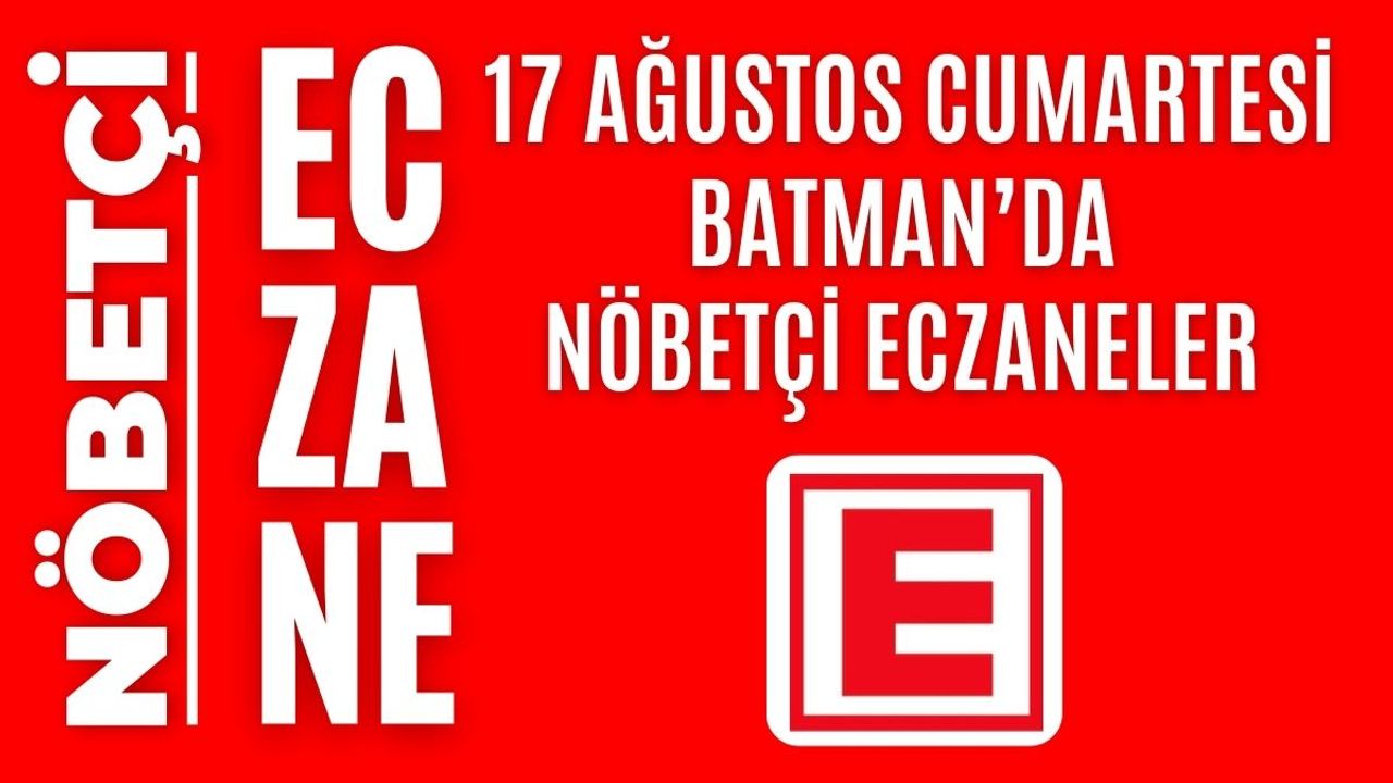 İşte Batman’da 17 Ağustos Cumartesi günü açık olacak olan tüm nöbetçi eczanelerin isimleri, adresleri ve iletişim bilgileri…