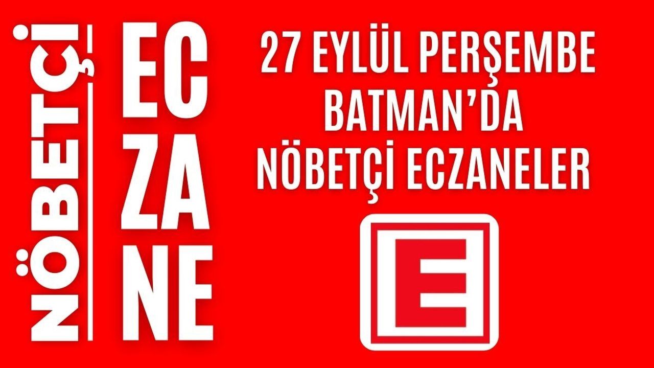 Bugün Batman’da Nöbetçi Eczaneler - 27 Eylül Cuma